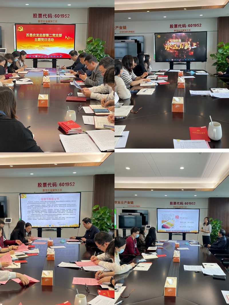 本次活动主题鲜明、内容丰富。支部党员臧素珍同志围绕主题作了《节约粮食 从我做起》的“开讲十分钟”,运用一系列关于粮食安全的数字、图片和视频等,生动形象地展示了保障粮食安全的重要性。林建洲、房赟两位同志结合自身工作和岗位实际,紧扣“粮食安全”有关内容,分享交流了个人学习心得体会。会上,支部向党员发出了爱粮节粮倡议书,倡议全体党员争做爱粮节粮的倡导者、践行者和宣传者;组织集体观看了《反腐倡廉永远在路上》警示教育片中粮食购销领域的“靠粮吃粮”腐败案例和“4•15”全民国家安全教育日保密教育公益宣传片《保密防线》,引导党员以案为鉴、以案明纪、以案促改。支部还审议通过了《开云电子发总部第二党支部2022年度学习计划》,为党员路顺涛同志过了“政治生日”。