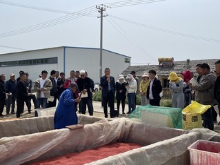5月24日上午,三河分公司副总经理路道彬等一行28人到复兴圩分公司进行交流学习,复兴圩分公司总经理助理沈阳和农业中心等相关部门人员陪同。一行人首先参观了复兴圩分公司本部大队的育秧流水线,现场听取了当前水稻生产情况。复兴圩分公司农业中心副主任宋金阳介绍:“今年,复兴圩分公司采用叠盘暗化的育秧方式,主要优势在于可以有效调控秧苗生长环境的温湿度,更好地达到出苗整齐、秧苗健壮、成秧率高、抗逆性强等成效”。今年,复兴圩分公司全面积使用微喷旱育秧技术,育秧236亩。创新之处在于往年全部在大田地头育秧,现在充分利用拾边隙地整平后进行育秧,激发边际效应提升农业管理经济效益。路道彬表示:“复兴圩分公司在水稻育秧方面的好经验、好技术值得在三河分公司推广借鉴,我们要树立“干就负责、做就到位”的工作作风,把秧田管理工作做细做实,高效推进水稻生产工作。双方表示今后将继续加强沟通联系,互相取长补短,共同推动双方分公司高质量发展。